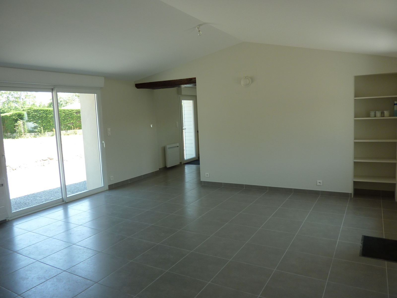 Entrée sur séjour, cuisine aménagée et équipée, dégagement, deux chambres, bureau, salle d'eau, wc, cellier/buanderie.
