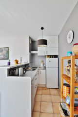 Excellent emplacement dans rue résidentielle, au calme.Entrée,séjour et cuisine ouverte aménagée sur terrasse est, chambre, salle de bains, wc.Parking couvert.Quartier très recherché proche hyper centre.Calme et soleil.Bel investissement.