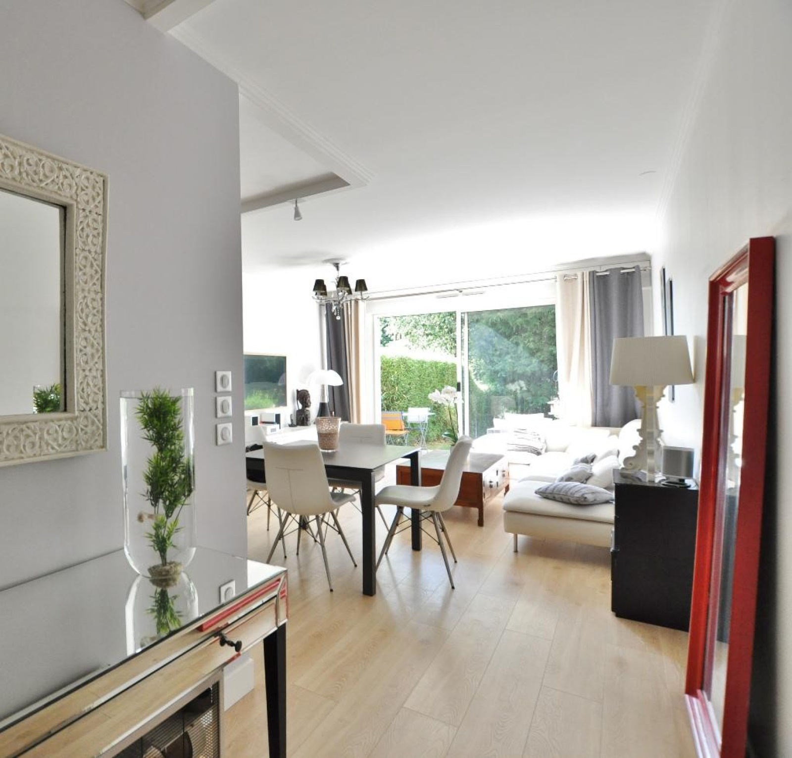 Dans petite résidence de standing, Beau T3 sur terrasse et verdure Séjour et cuisine ouverte équipée, l'ensemble 26 m², sur terrasse et jardin, deux chambres et salle de bainsJoli jardin de la copropriété.Cave et deux parkings extérieursExcellent état - Emplacement très privilégie.Charme, calme et soleil.
