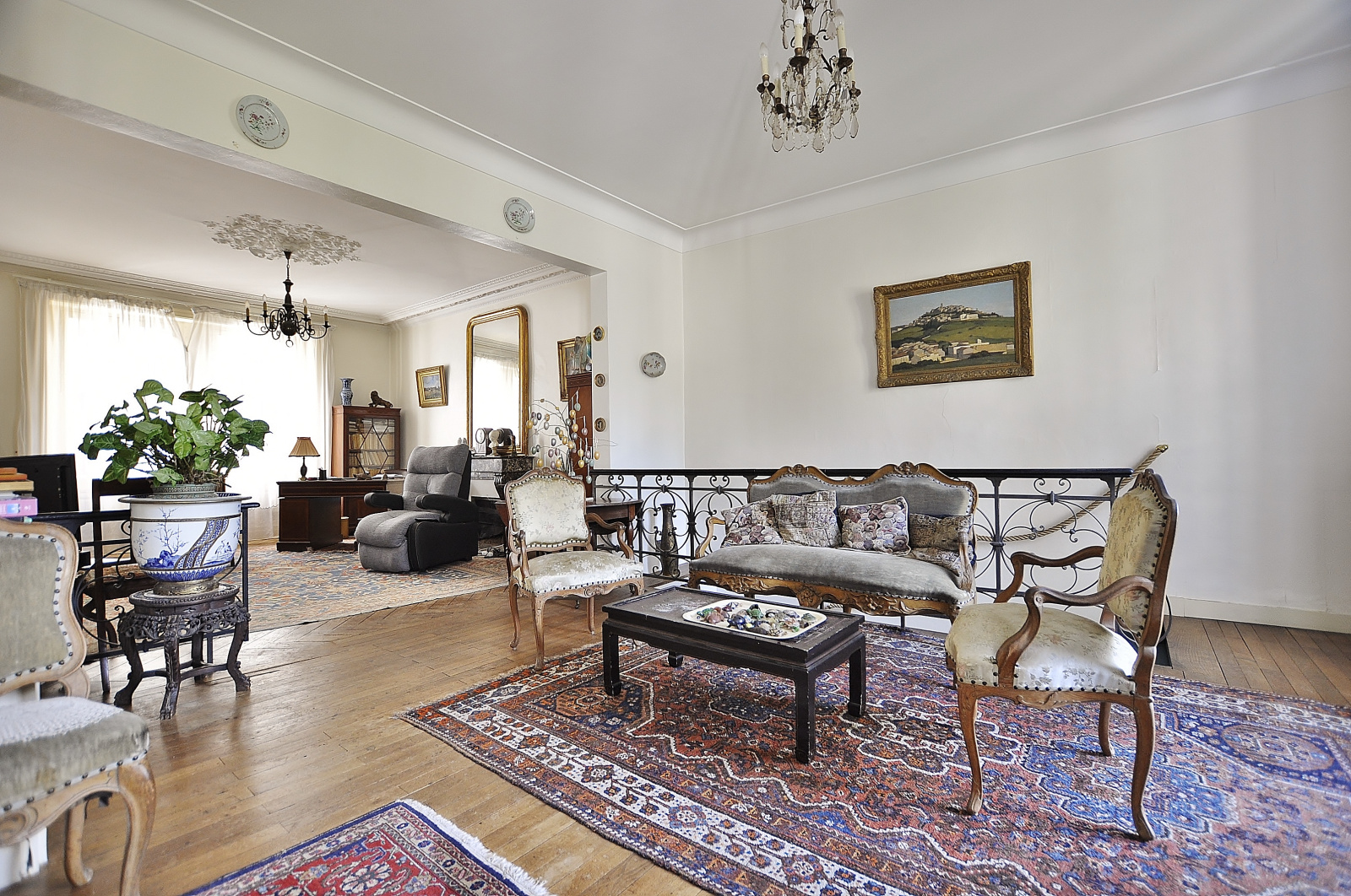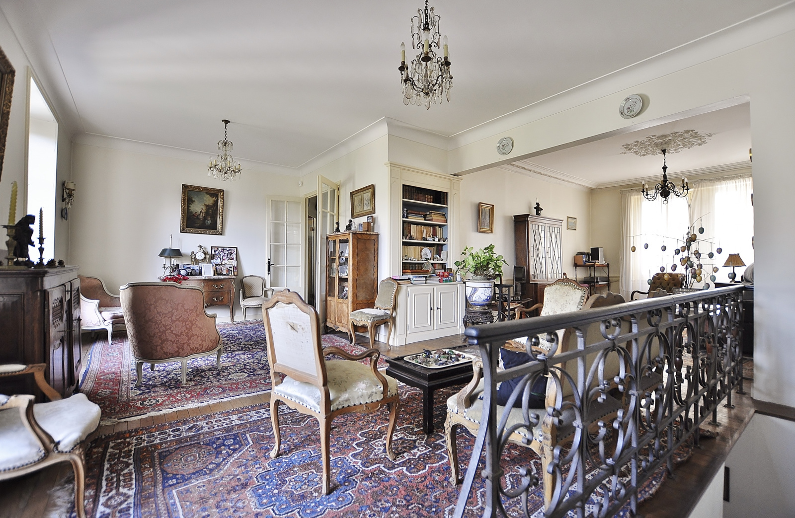 Bel appartement en duplex d’une surface Carrez de 134,93 m² comprenant :Entrée, triple réception traversante (52 m²) sur balcon et jardin ouest, cuisine aménagée, bureau, trois chambres, salle de bains, wc.