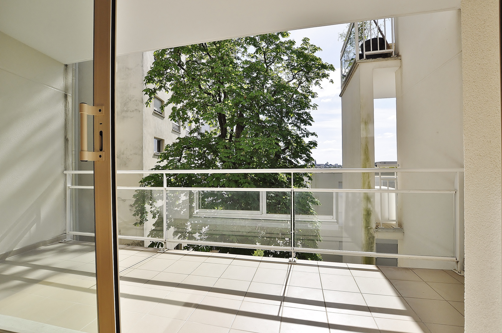 Appartement type T3 au 3ème étage (asc), d’une surface Carrez de 77,14 m2, comprenant : Entrée, séjour (25m²) sur terrasse ouest, cuisine aménagée, deux chambres (11,63m² et 11.89m²) dont une sur terrasse, salle de bains