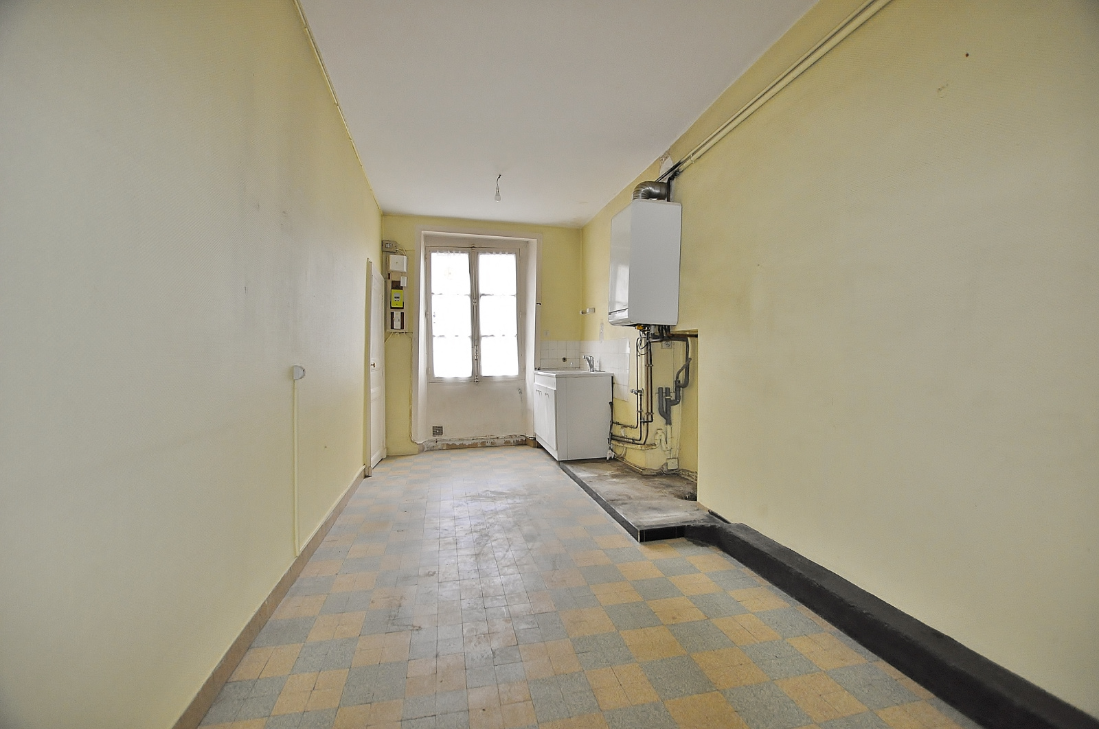 Entrée, double réception (parquet, cheminées), cuisine séparée, trois chambres, salle de bains, wc.