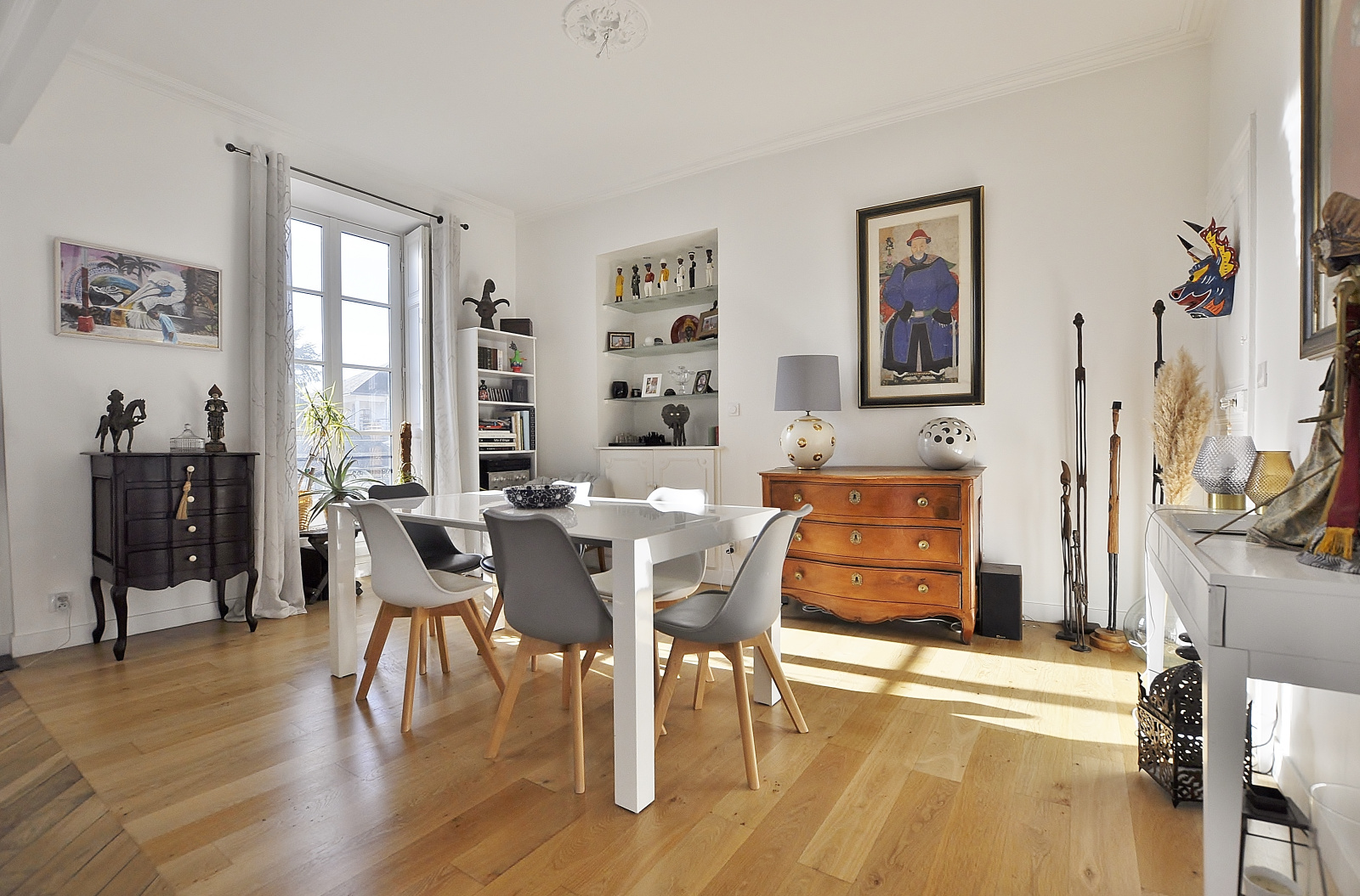 Entrée, double réception 38m² (parquet, moulures, boiseries), cuisine aménagée et équipée, trois belles chambres (16m², 15 m² et 12 m²) salle d’eau, wc.