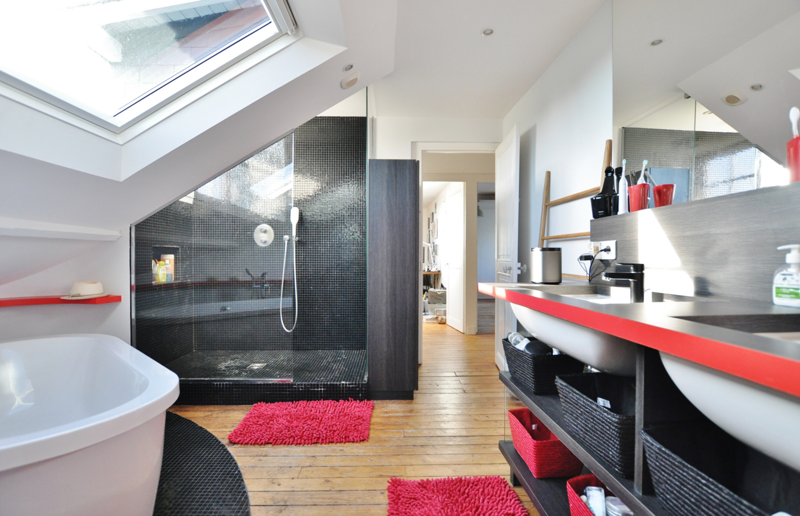 A l'étage : palier, trois chambres, salle de bains (baignoire, douche et wc), dressing.