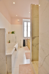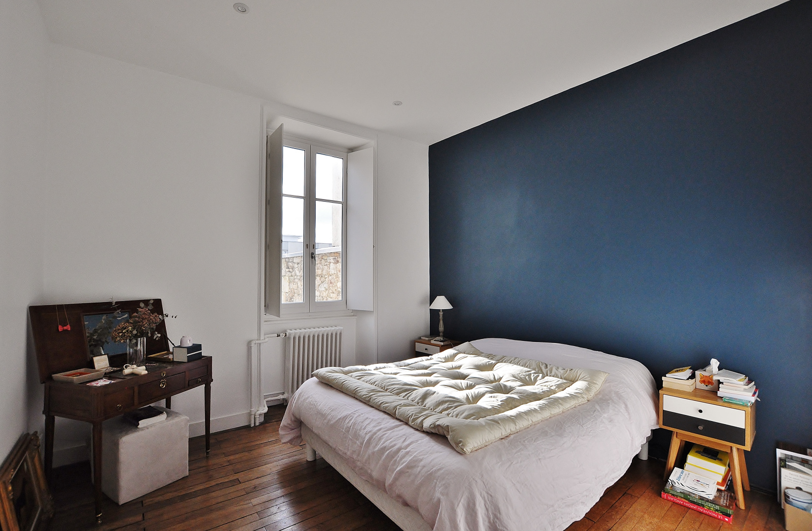 A mi-étage, chambre avec salle d'eau privative et wc.