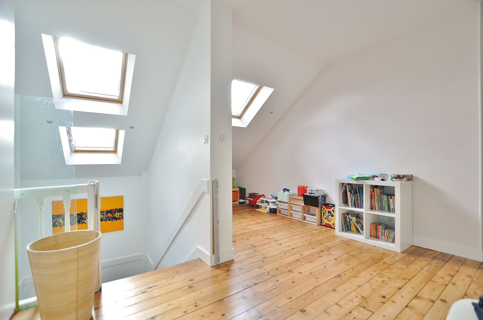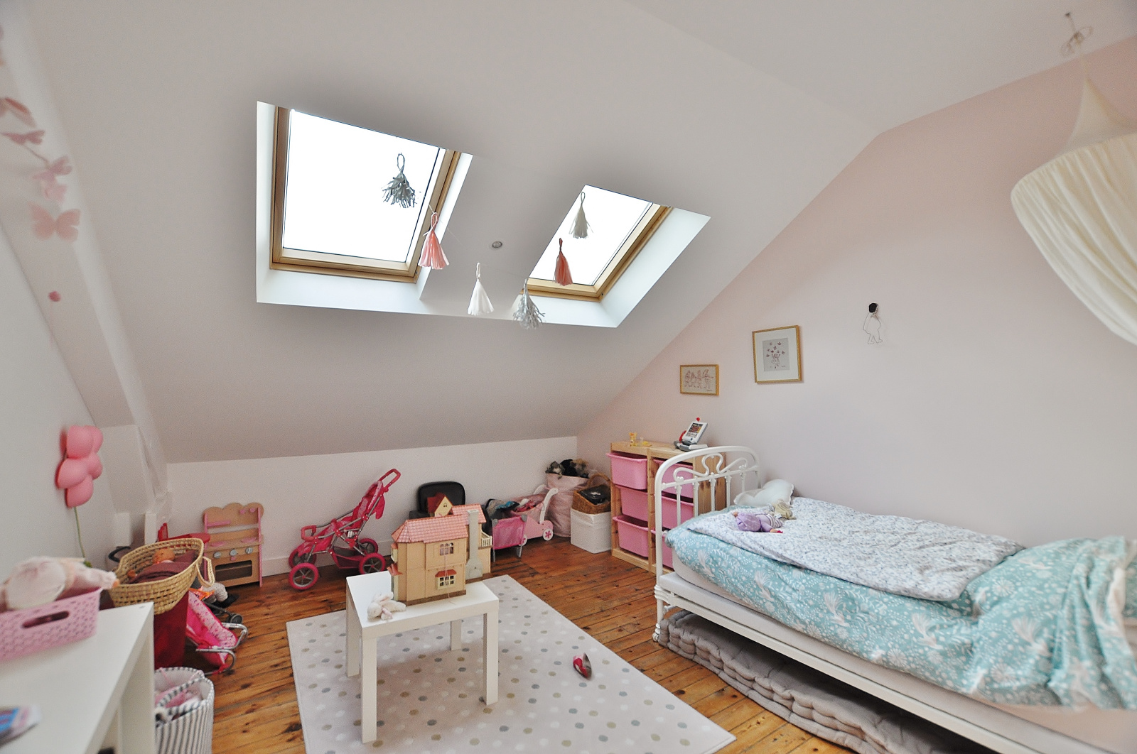 Au-dessus, grand palier-salle de jeux avec placards, trois chambres, salle d'eau avec wc.