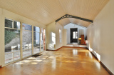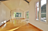 Entrée, salle à manger (13m² - parquet), beau salon sud avec partie verrière env. 28m² sur parquet chêne, cuisine aménagée avec coin repas env.14m², wc.