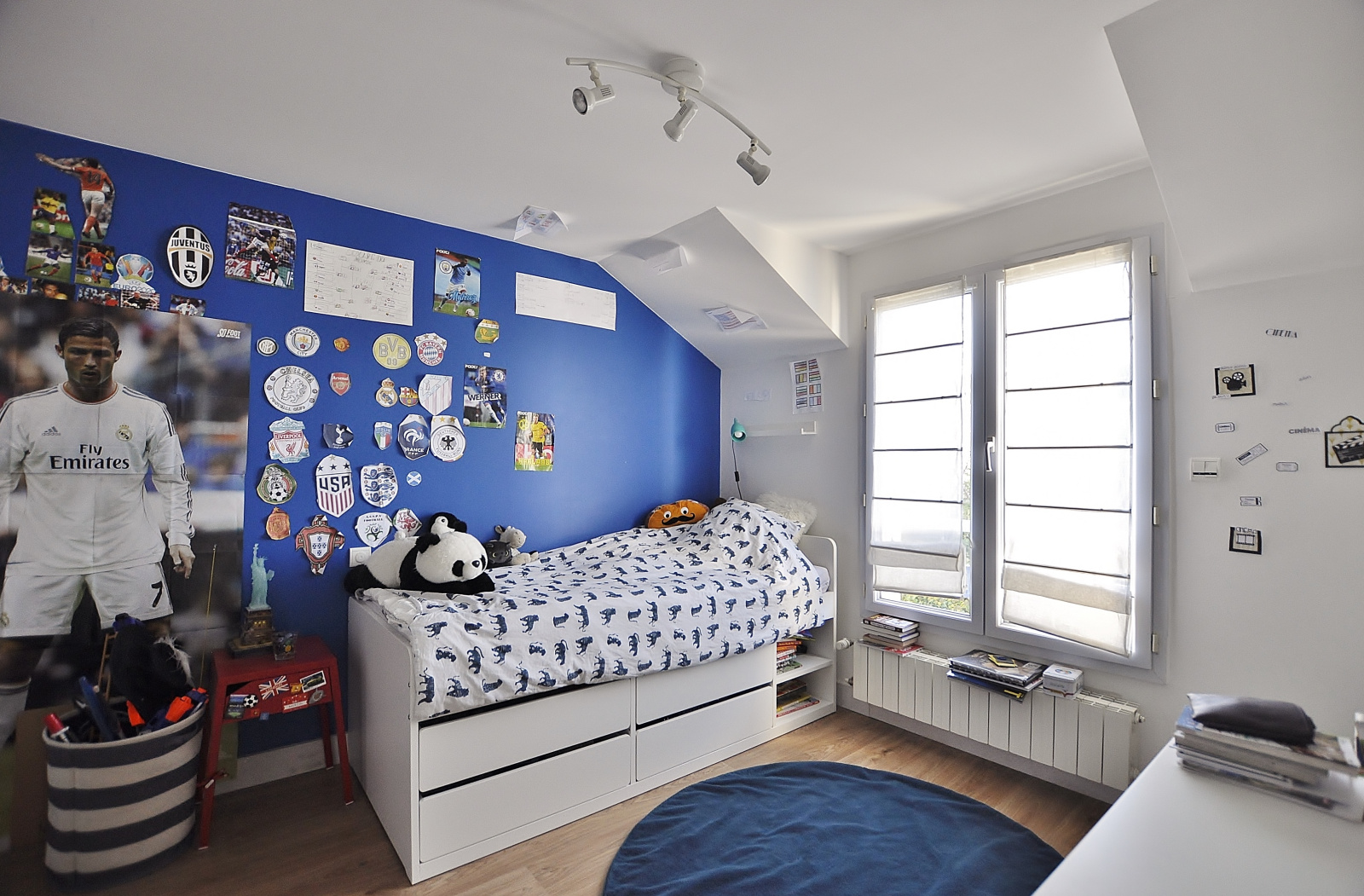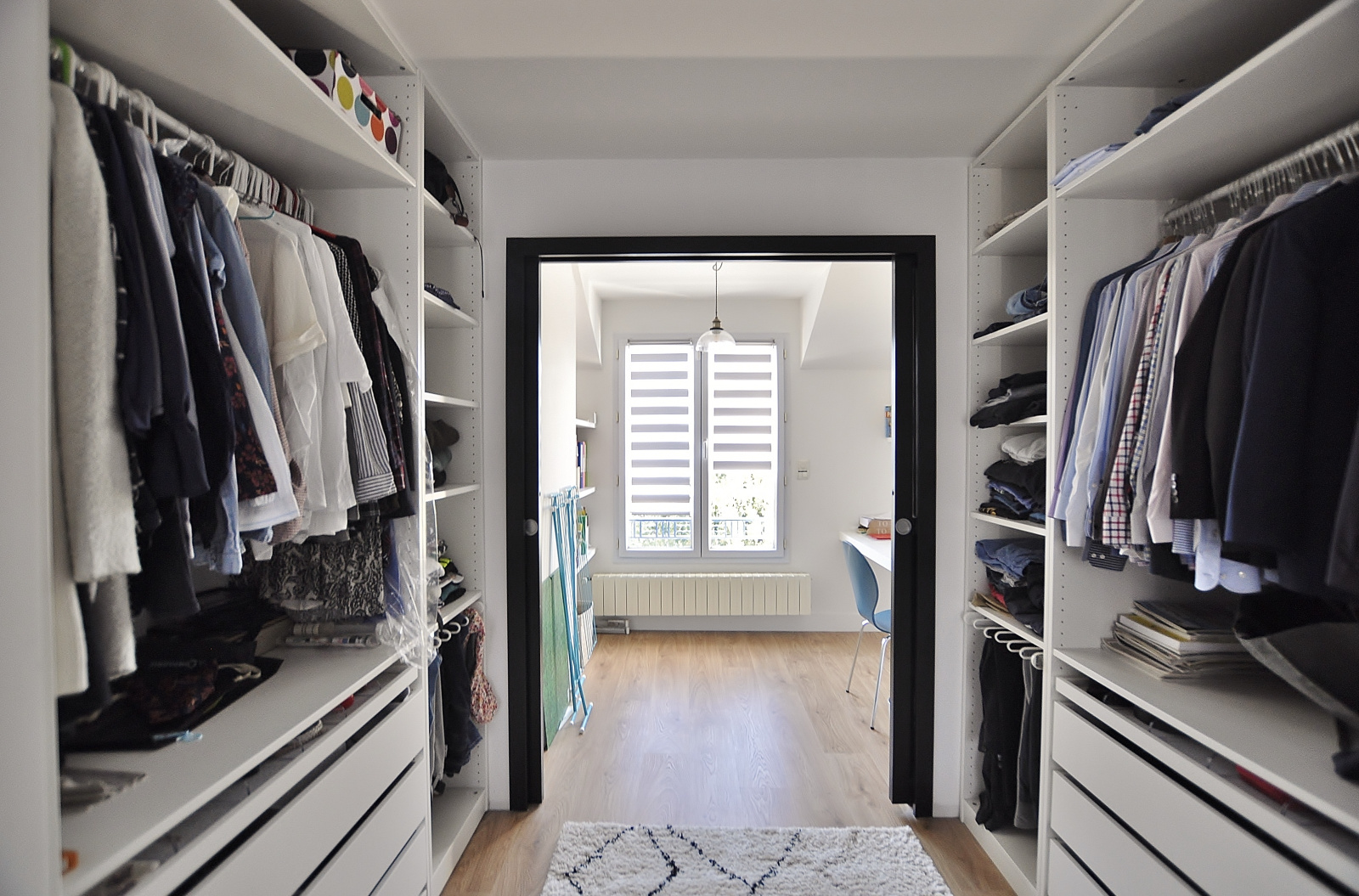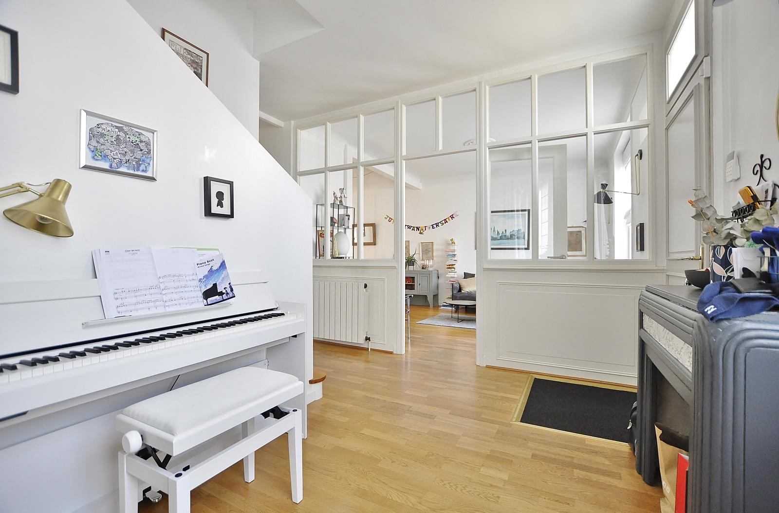 A l'étage, deux chambres avec placard et grande chambre parents avec dressing et espace bureau, salle de bain (douche - baignoire) et wc.