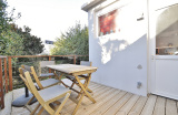 Vaste entrée avec grands placards, séjour salon parquet et grande cuisine, très bien équipée, avec coin repas sur jardin ouest, chambre, salle d'eau et wc.