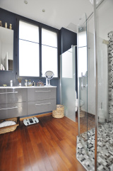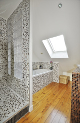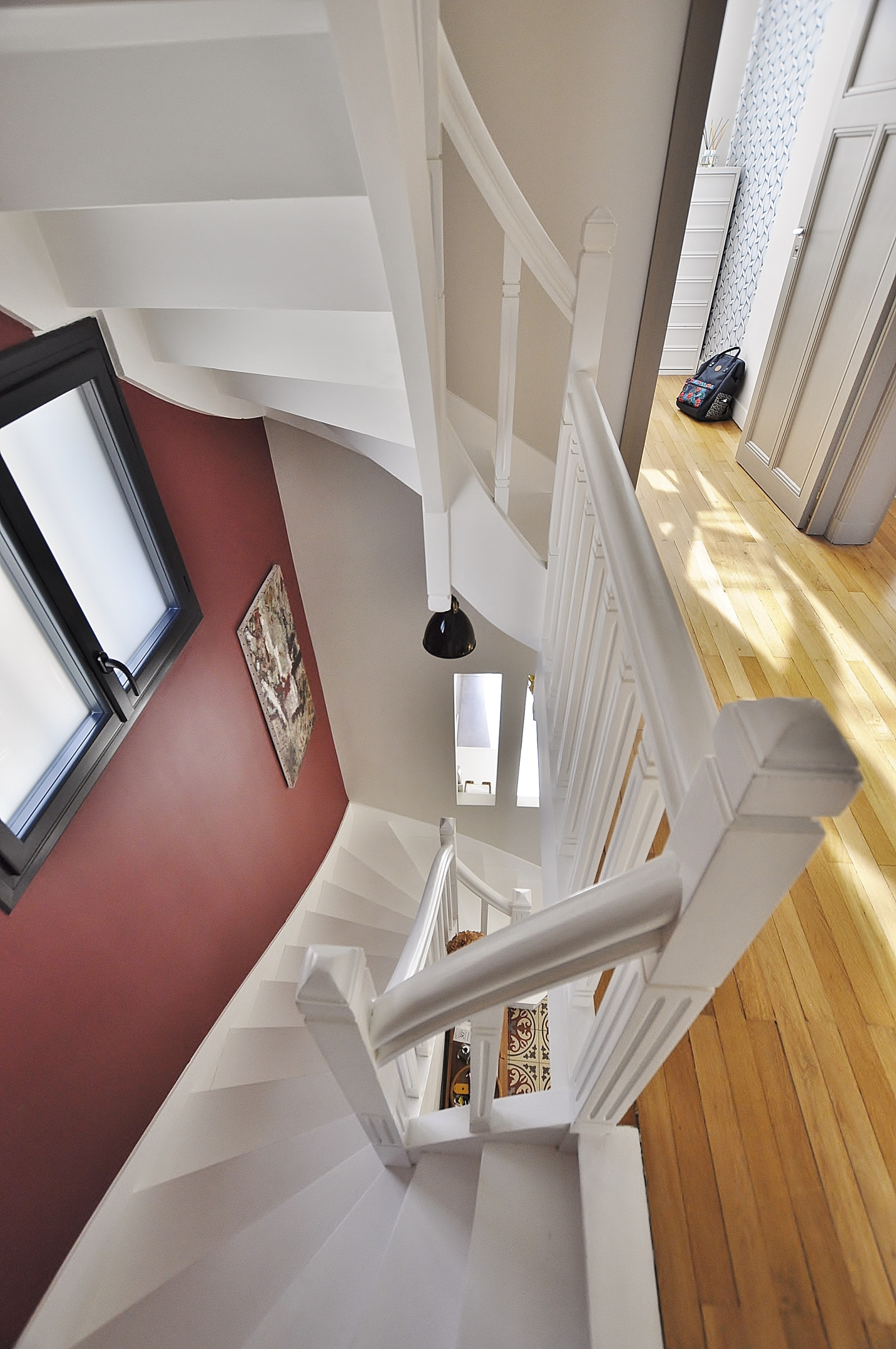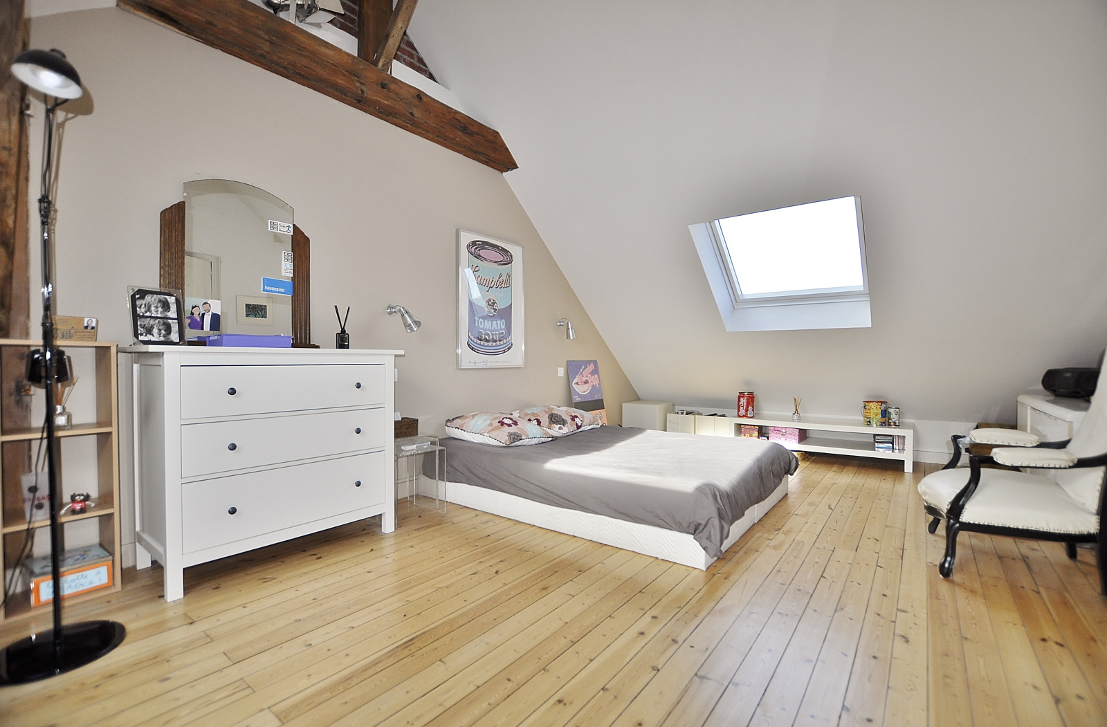 Au-dessus, palier, grande chambre placard, salle de bains (baignoire et douche), wc.Possibilité de 4ème chambre