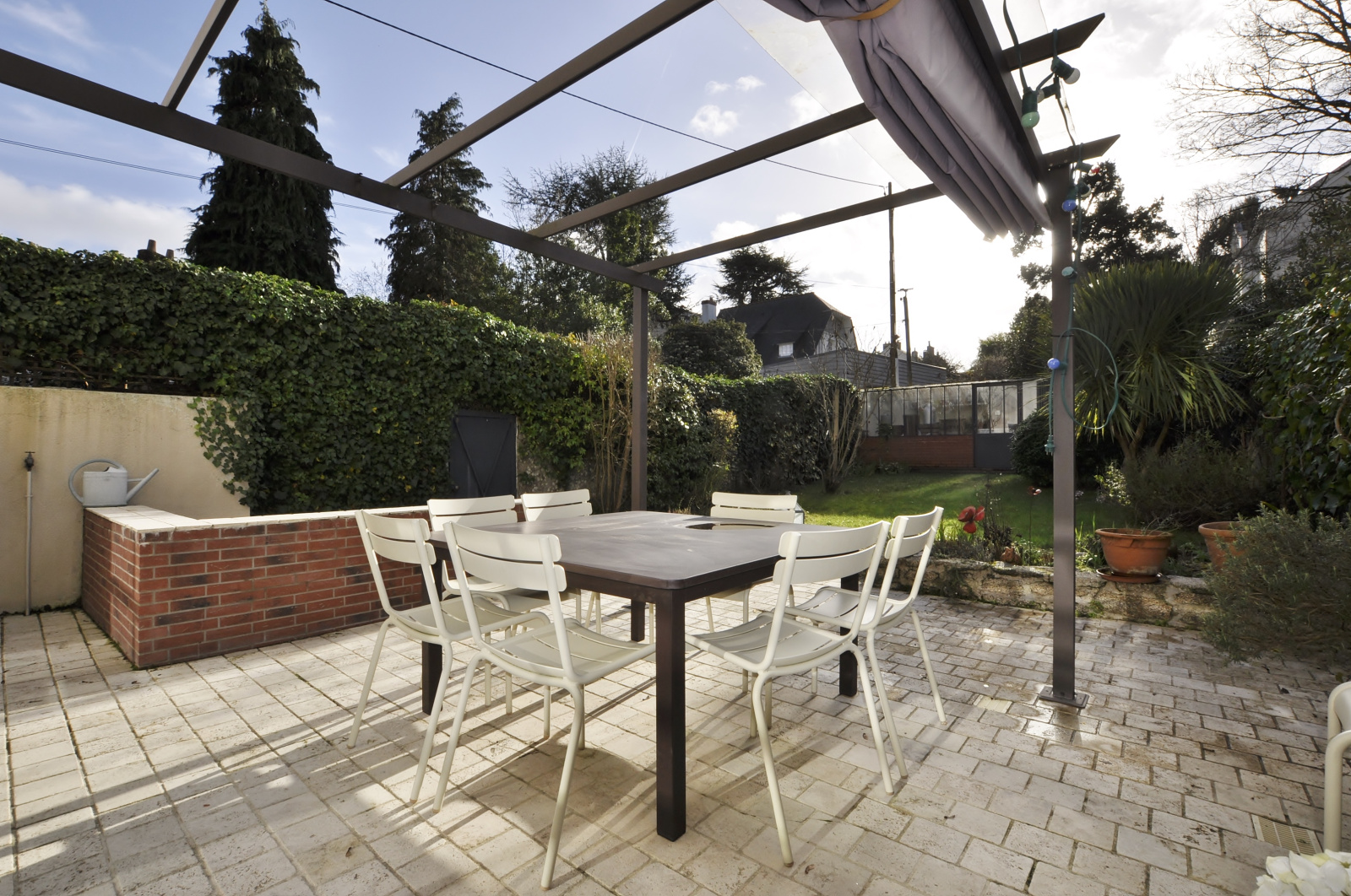 Garage - Jardin d’hiver - Terrasse avec pergola et beau jardin clos de murs.