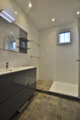 Garage (chaudière gaz), buanderie et wc (26 m²). Combles aménageables isolés.