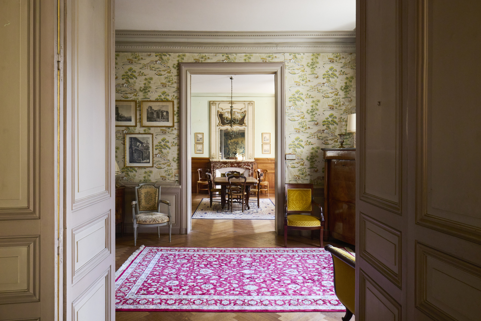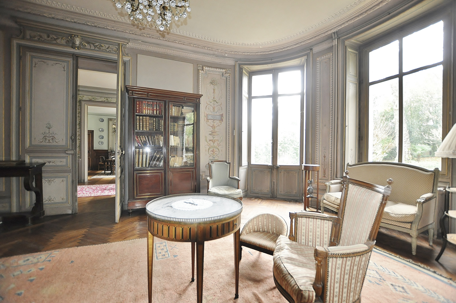 (cheminées, parquets, rosaces, trumeaux, miroirs, portes cintrées…).