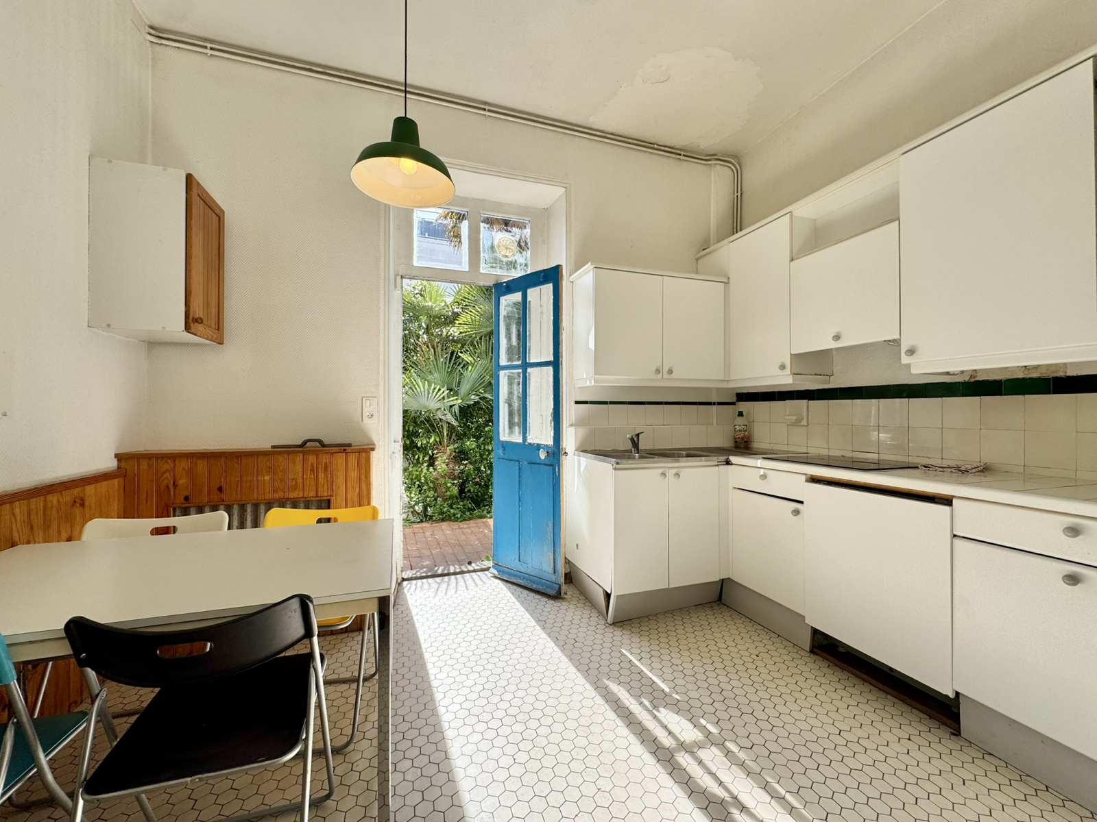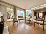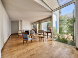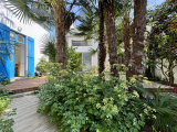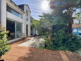 Entrée, séjour et salle à manger sur terrasse et jardin, cuisine aménagée sur jardin, chambre avec salle d'eau privative, bureau.