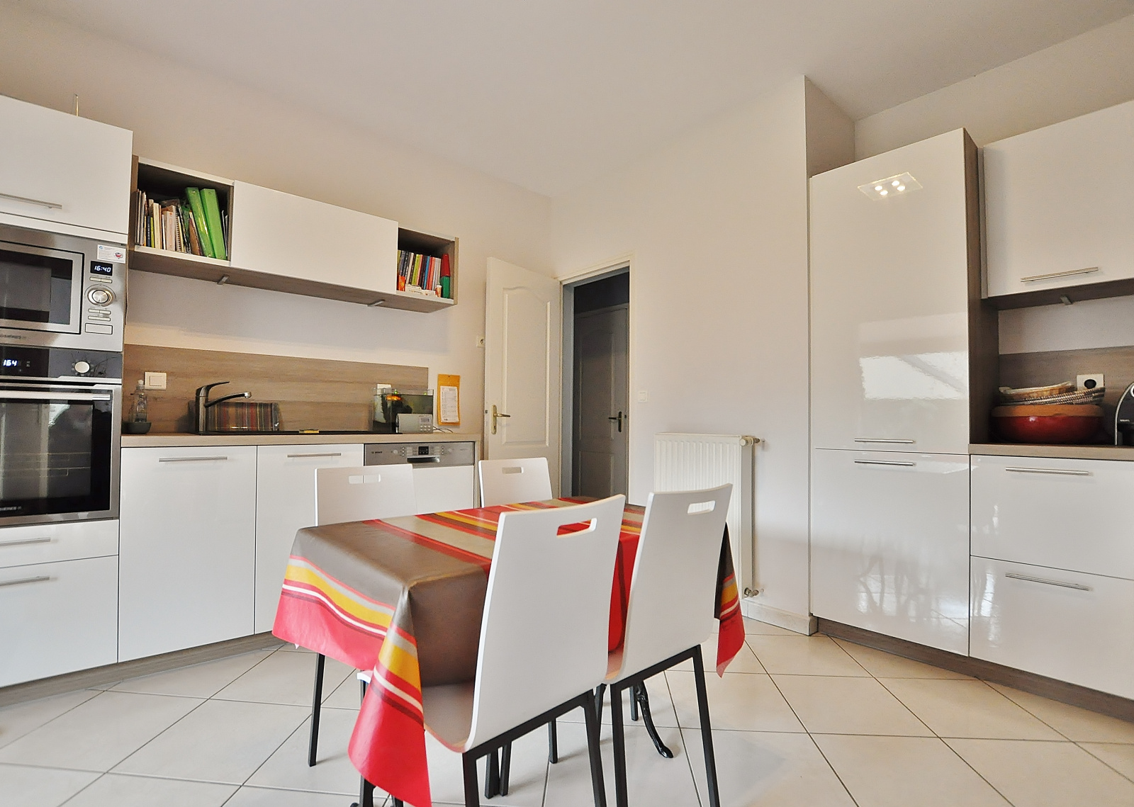 Entrée, salon (cheminée) salle à manger, cuisine très bien équipée, chambre et salle d'eau privative.