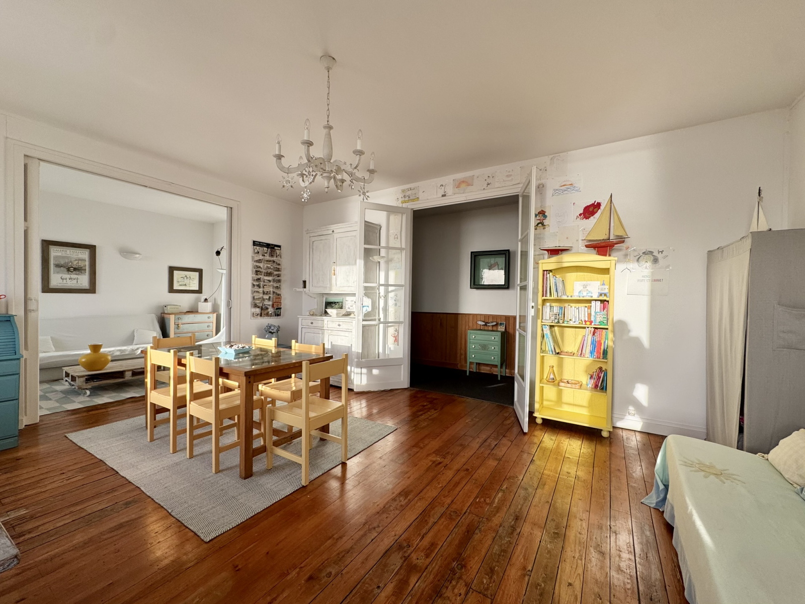 Actuellement aménagé en T6 avec 4 chambres, il se compose de deux lots communicants, chacun disposant de sa porte d'entrée, permettant la création d'un appartement 3 chambres et d'un studio indépendant.